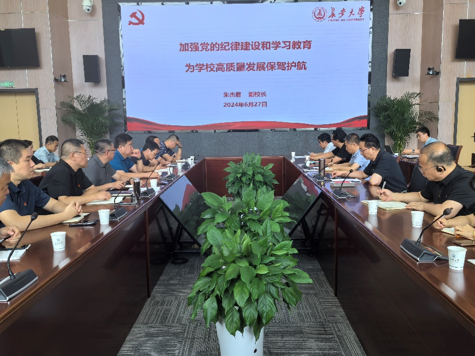 为深入学习贯彻习近平总书记关于党纪学习教育的重要讲话和重要指示精神,推动党纪学习教育走深走实,根据学习安排,6月27日下午,副校长朱杰君在北校区师生服务大厅二层第一报告厅为后勤管理处、南校区管理办公室、医院班子成员及国资处党支部全体党员讲授党纪学习教育纪律党课。